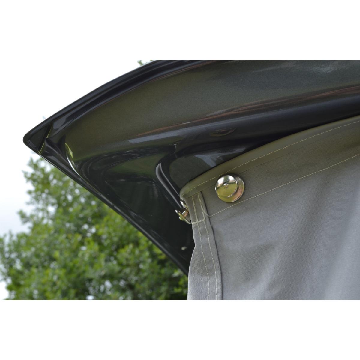 Toile Ten Cate polyester avec enduction acrylique: imperméable et respirant, résistant et facile à nettoyer Finition s avec biais PVC inaltérable gris, liaison au sol par bavette PVC.