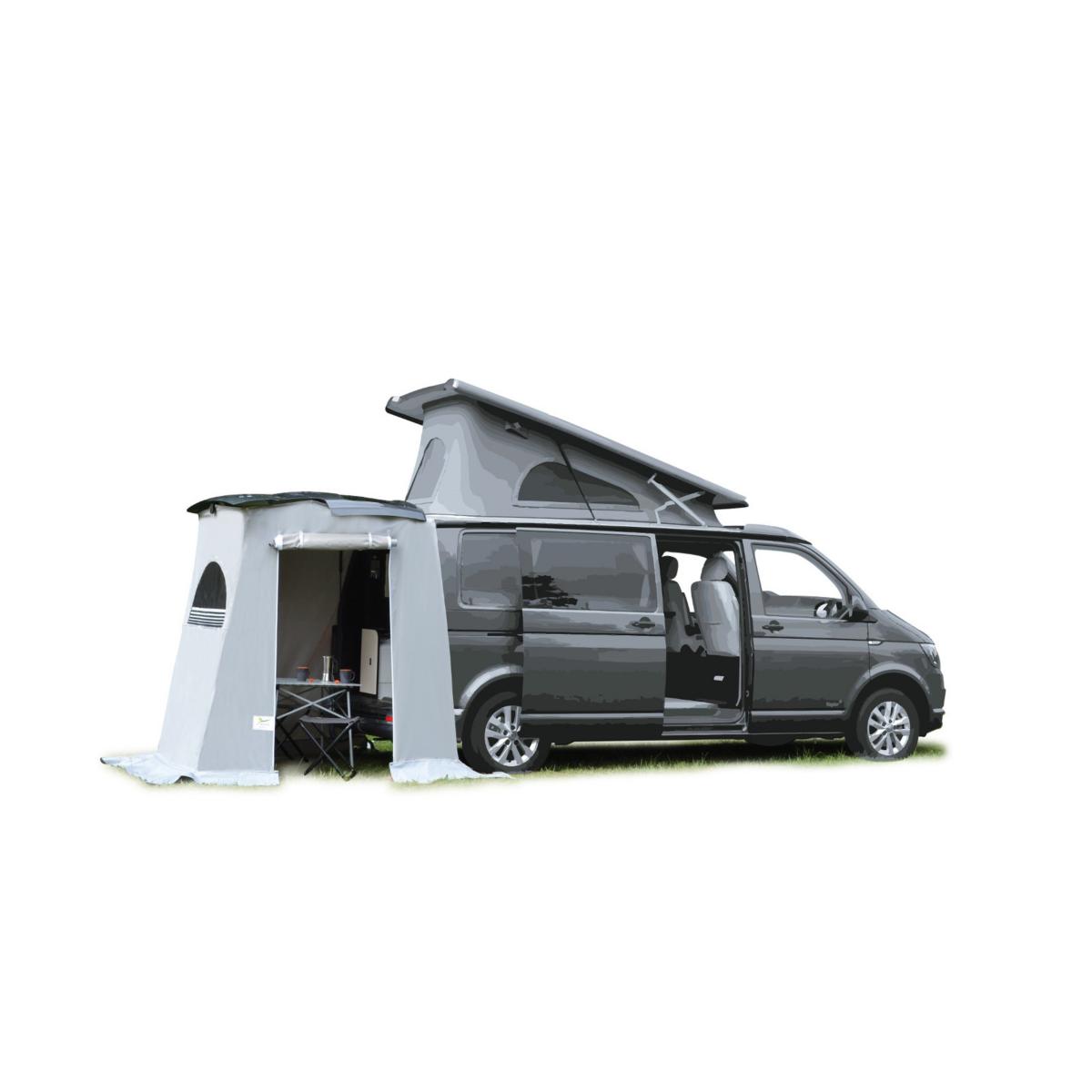 Multifonction, l'auvent Spacecamp SAS arrière peut servir d'espace repas, cabine de douche ou de zone de rangement!